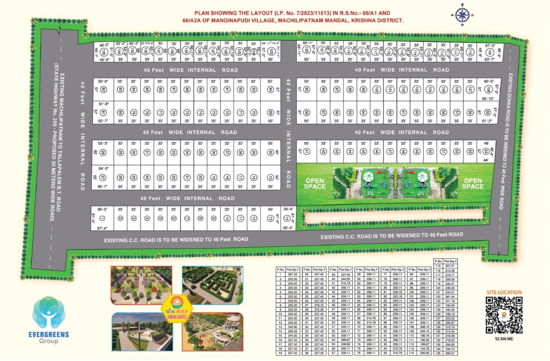 Evergreen group Vinrise project offers modern and comfortable living in Machilipatnam. This layout is designed to provide a peaceful and spacious living experience with ample natural light and ventilation.